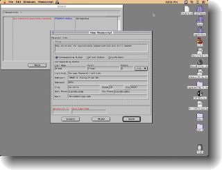 The Submission Agent is a program that members of the Neuroscience community have running on their own computers. Its sole responsibility is to make it easy and uniform for the submitter to gather all the individual pieces of the manuscript together (i.e., body of text, illustrations, photographs, list of recommended reviewers, letter to editor, etc.), put them into one mailable manuscript package , and send it to the network for forwarding. The Submission Agent works with standard message transport systems to move the manuscript package from the submitter's site to the Central Repository (i.e., the electronic office for communicating with this publication).